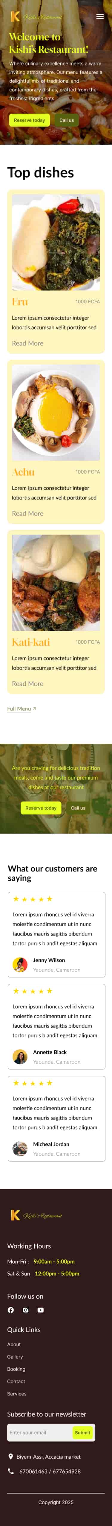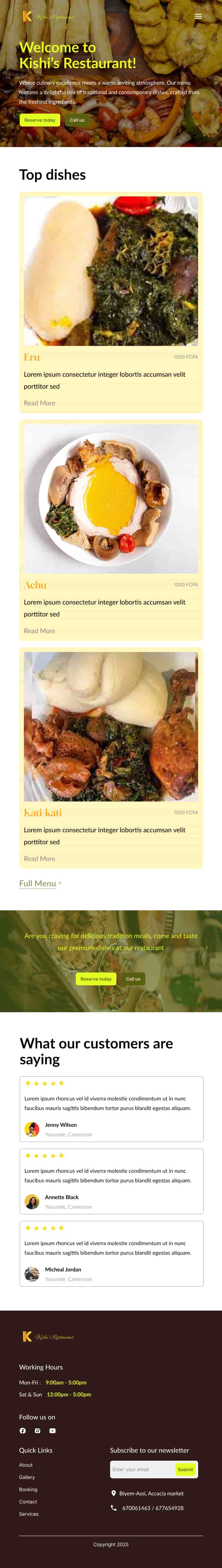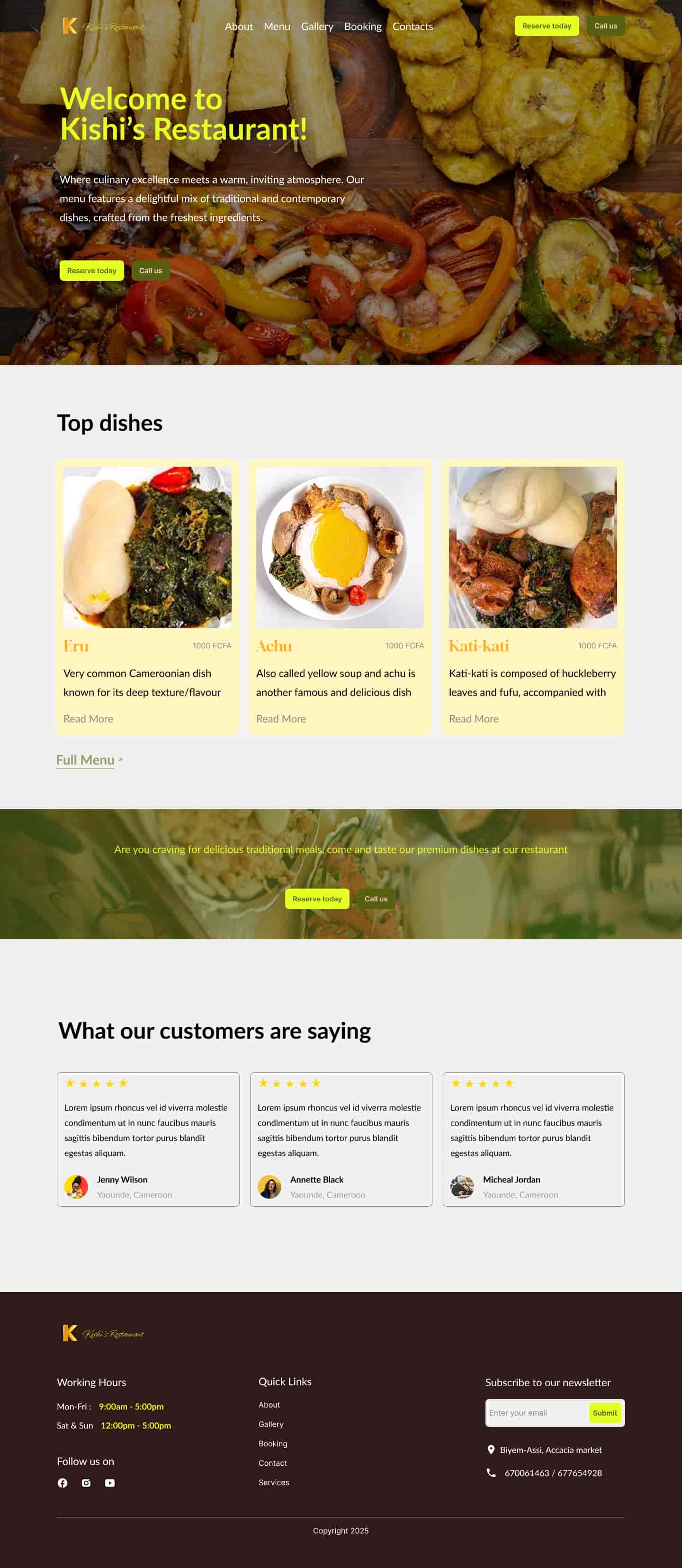 Website for a restaurant business. School. Connect with clients to view your meals and book appointments.